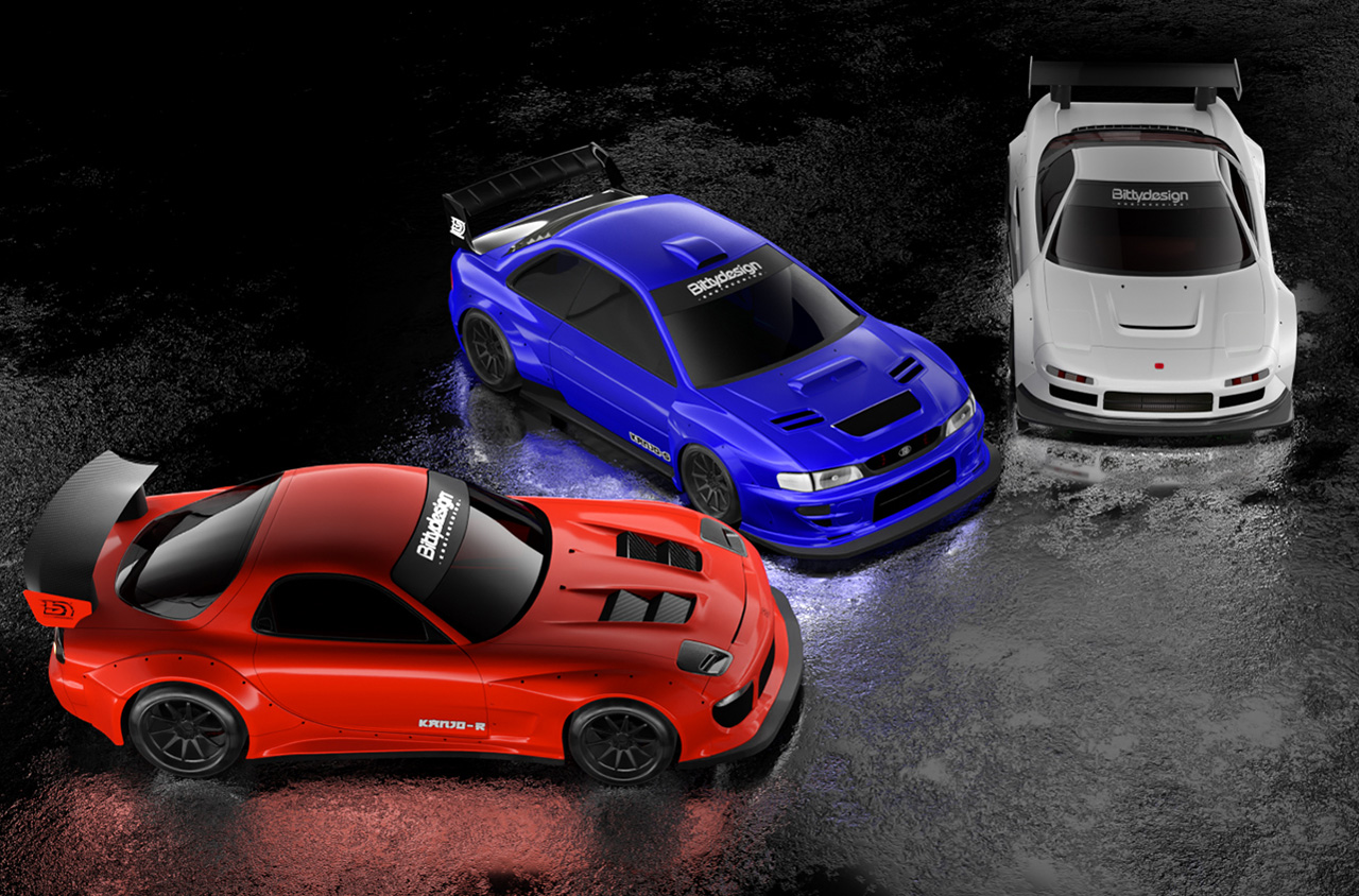 BDMZ-KJR - Kanjo-R - "Mazda RX7 Style"Introducing three new Japanese performance icon body shells from Bittydesign in 1/18 "Mini-Z" scale.