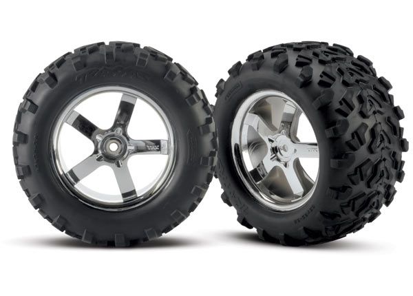 Tires & wheels, assembled, glued (Hurricane chrome wheels, Maxx tires (6.3' outer diameter), foam inserts) (2) (fits Revo/Maxx series)