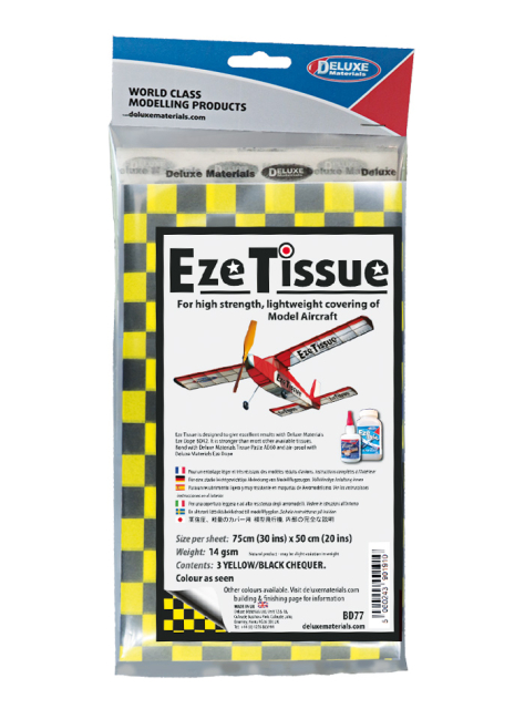 The paper is designed to be bonded with Deluxe Materials Tissue paste AD60 and subsequently air-proofed with multiple coats of Deluxe Materials Eze Dope BD42.