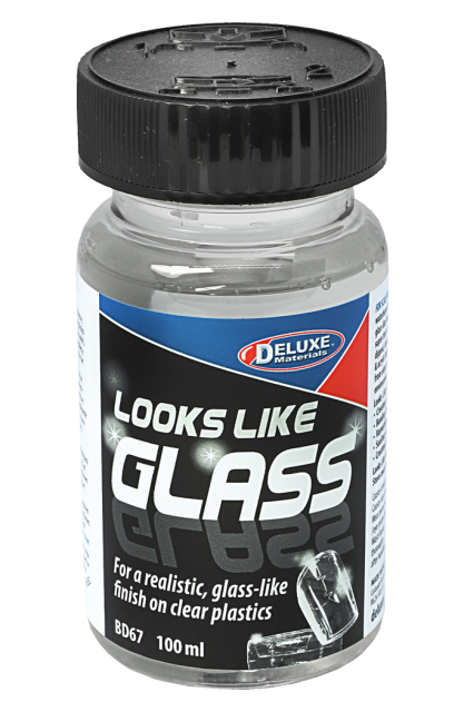 Looks Like Glass is a super- thin, water- based, transparent fluid for the creation of a smooth glass-like effect on kit plastics such as clear canopies. Plastic parts are simply dipped and allowed to dry for 2-3 hours. Surface detail is retained. Looks Like Glass can be used for the following modelling applications e.g.- Glass like finish on canopies, windows etc.
