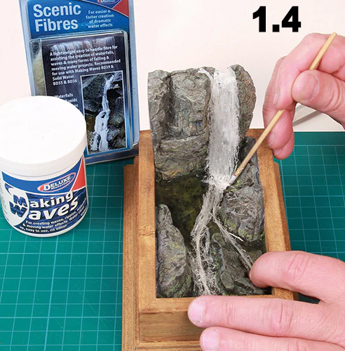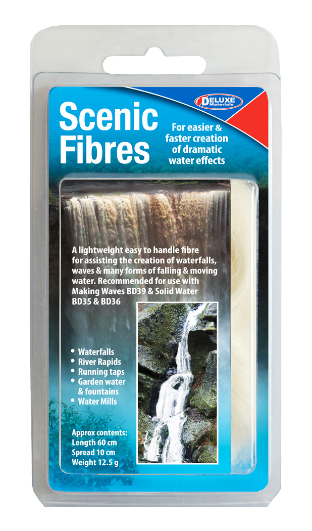 Scenic Fibres - A lightweight easy to handle fibre for assisting the creation of waterfalls, waves & many forms of falling & moving water.Products to use with Scenic Fibres to make a perfect waterfall: