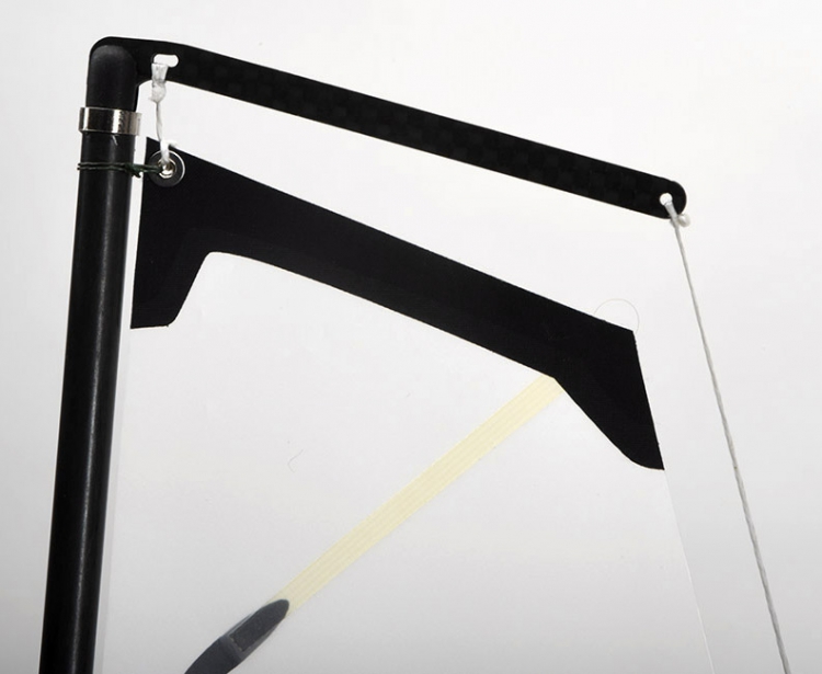 - 50 micron Mylar film racing sails with printed flow stripes and logos