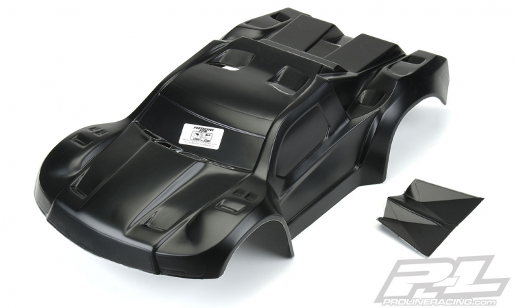 This is a Pre-Cut Flo-Tek Fusion Tough-Color Black SC Body. Pro-Line is proud to release the Flo-Tek Fusion made from completely black polycarbonate material with detailed wrap decals and Pre-Cut to get you going even faster! Just install your decals and put in your body post holes and go! The Fusion wrap decals are pre-cut and feature Pro-Line Blue speed lines that will make your truck stand out from the rest. The Tough-Color polycarbonate is made from black material, so you never have to worry about paint peeling or chipping off. Realistic window stickers are also included!