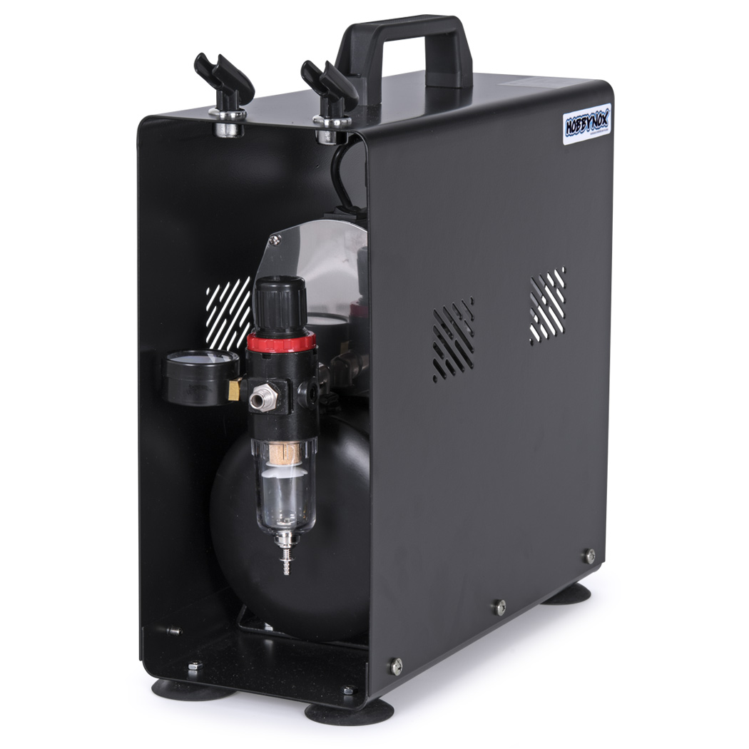 Hobbynox AS186A är en tystgående luftkompressor avsedd för all typ av airbrushmålning. Den passar de flesta airbrushsprutor på marknaden (upp till 0.8mm munstycken) som inte förbrukar mer än 20-23 liter luft per minut.Egenskaper: