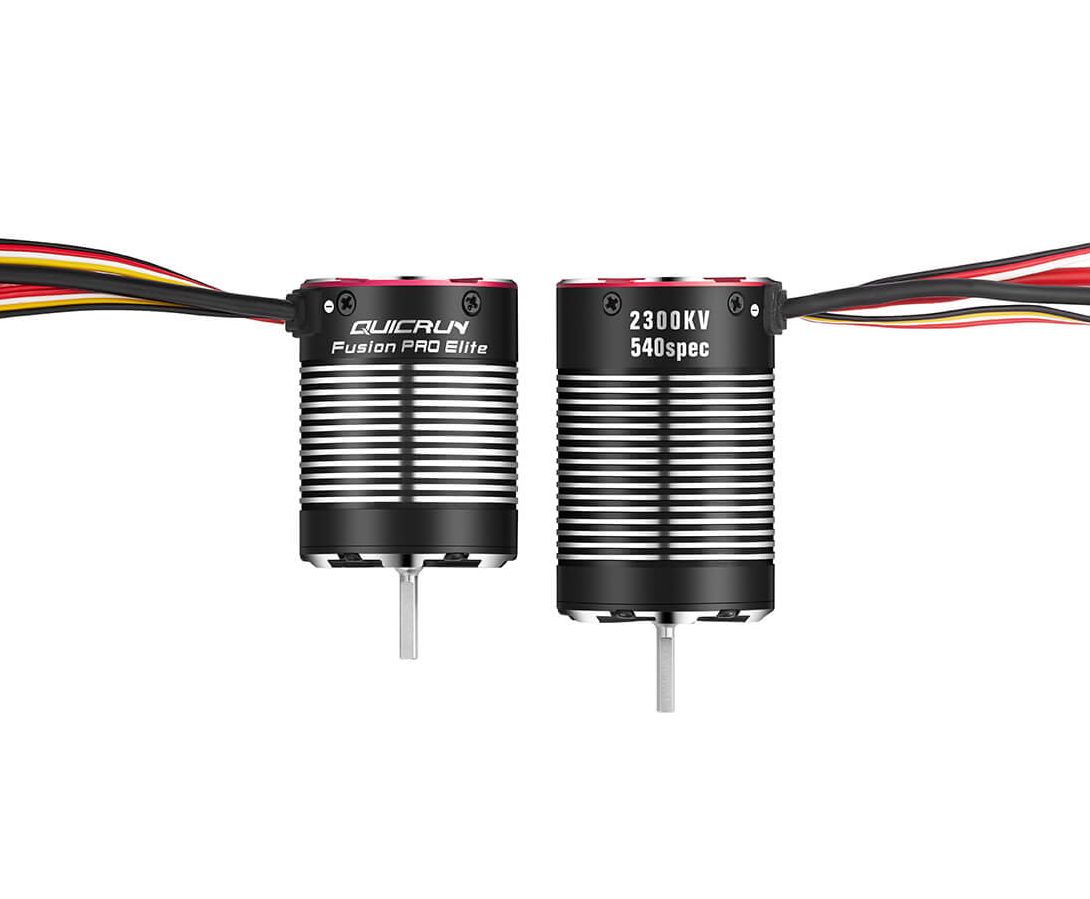 The QuicRun Fusion Pro Elite is a compact, high-performance 2-in-1 brushless power system that integrates the ESC and motor in one unit. Specifically designed for 1/10 scale crawlers, it features advanced FOC (Field Oriented Control) technology to deliver strong torque at low speeds, smooth throttle control, and quiet operation. The ultra-short design (only 48.5 mm long) allows clean and easy installation in most crawler chassis.