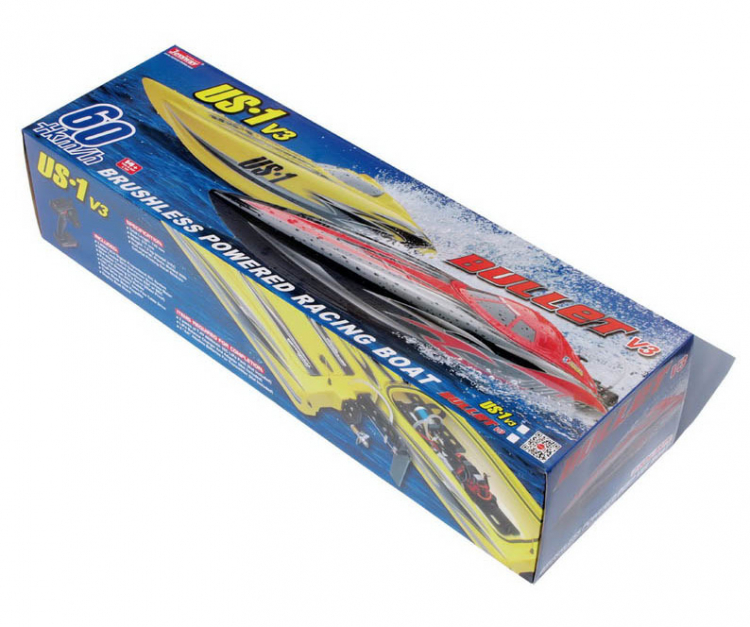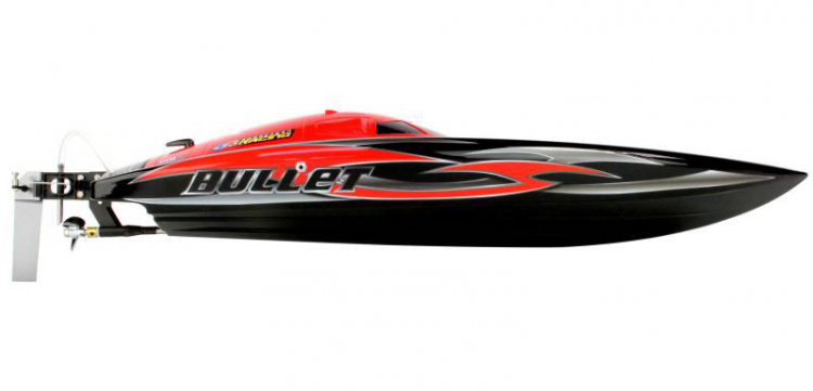 Shooting across the water, the new Bullet Speedboat will certainly leave its mark. Supplied with 2.4GHz radio, a 60A water-cooled brushless ESC mated to a powerful 2815 out-runner BL motor, tough 37 g steering servo and CNC aluminium rudder.Specs: