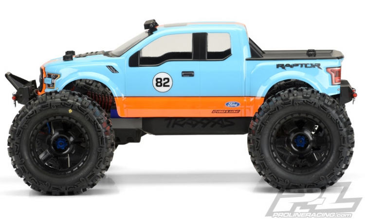This is a Pro-Line 2017 Raptor Clear Body for Monster Trucks. Introducing one of the most anticipated Truck bodies of all time: the all-new 2017 Ford® F-150 Raptor truck body for Monster Trucks! Pro-Line’s highly detailed yet functional replica has included all the rugged Raptor style and attitude into the body and decal sheet. The 2017 Raptor has a bold and tough body style and is the most cutting edge look available. This body completely transforms your REVO®, T-MAXX® 3.3, MGT or SUMMIT® into a True Scale Lifted Truck. If you are a Raptor fan, then this is the body for you! Be the envy of your friends.. Get your Pro-Line 2017 Ford® F-150 Raptor body today!