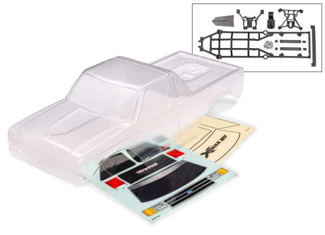 The clear X-Maxx MT Ford F-150 body comes fully trimmed and ready to paint with decal sheets, window masking, and pre-applied overspray film. Includes inner cage, clipless body latches, body reinforcements, and mounting hardware.For best results, use Hobbynox paint for a custom look.