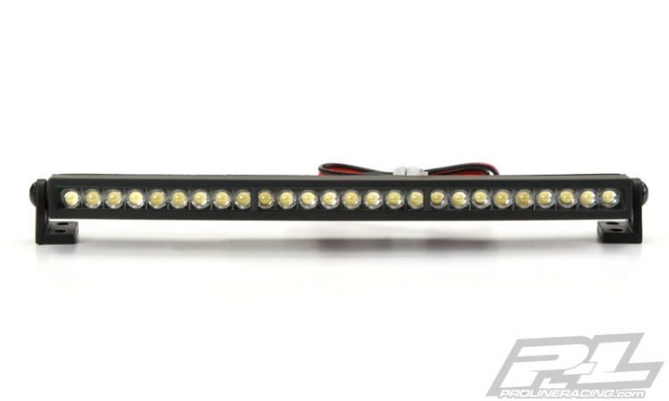 This is a 5” Curved LED Light Bar Kit. Pro-Line is proud to introduce a new 5" Curved LED Light Bar Kit with real, working LED Lights! The 5” Curved Light Bar comes with 26 LED Light bulbs pre-wired with a 12” long cable that can plug directly into your receiver for power. The Lights are rated for 6V to 12V power, so you have the option to plug directly into a 3S Lipo power source for Super-Bright LED Light! The LED Lights are housed in a durable Curved Black Nylon housing branded with a P-L logo and includes the mounts and hardware you need to do a custom install on your favorite vehicle. The 5” Curved LED Light Bar has great scale appearance that will fit in with any scale vehicle. Night Crawling has become the new cool thing to do with your scale rig, don’t get left in the Dark! Get Pro-Line’s new 5” Curved Super-Bright LED Light Bar Kit for your truck today!Features: