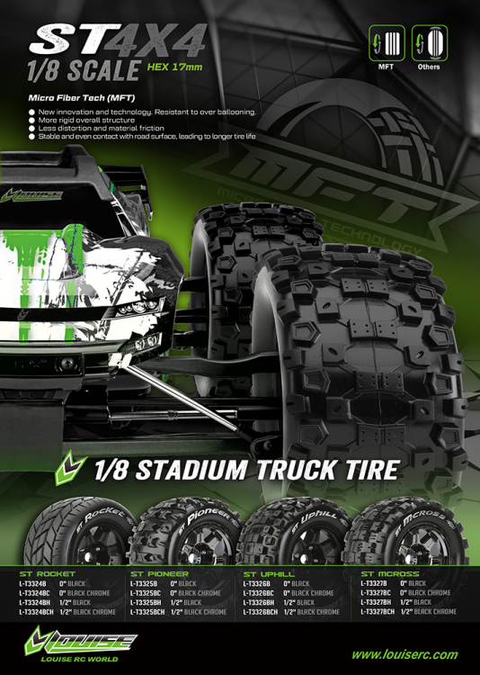 LOUISE LT3324BH - ST-ROCKET MFT Däck för 1/8 Stadium Truckar - 1/2" Off-set (2)