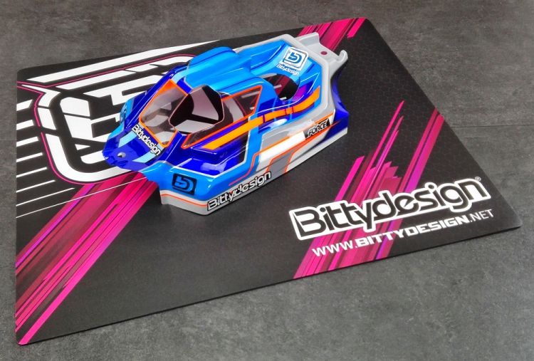 The small Table Pad has been designed in term of size (51x41cm) to fit perfectly a 1/10 model (On and Off-road) and a 1/8 buggy chassis.