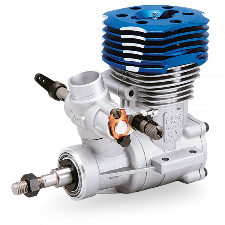 This is the increased power version of the 50SX-H RING which is developed expressly for F3C M class helicopter competition utilizing 0.50 cubic inch engines.Blue Aluminium (covered with alumite that does not conduct current) heatsink head increases cooling capacity. Newly designed combustion chamber shape offers stable output both at hovering and high speed. The 60LH carburetor has a big 10mm bore which contributes the power increase. The cover plate has a cell to accept a sensor designed to install in the cover plate from the Futaba GY-701 Governor.
