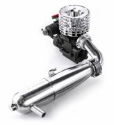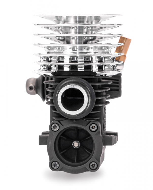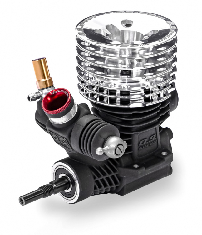 To increase torque on high-grip track surfaces, a newly designed 9-port sleeve is adopted. O.S. SPEED's traditional DLC coated crankshaft delivers linear power from low to top by changing the counter balance. The outer head has been mirror finish and by clear coat from the conventional color to a silver head base has been adopted. By adopting a thrust plate made out of steel, wear due to interference between the connecting rod and the cover plate during rotation is reduced and engine life is improved.