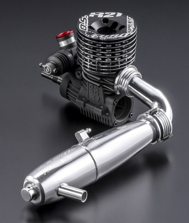 In addition to O.S.SPEED's proud high-performance series of engines for ON ROAD "R21", another new engine of interest will be added to the lineup. This "O.S. SPEED R21 EURO Spec." Is a high-speed course compatible engine that thoroughly pursues top speed growth by changing the port timing of the crankshaft and cylinder. Adopting a cylinder / piston dedicated to "EURO Spec", it was developed with the aim of being an engine that can "fight" more than ever even on long straight courses. In addition, it is also equipped with a specially designed outer head. The point is that it is stylish and has a design that tickles the hearts of enthusiasts. "T-2080SC/TR01/EFRA2098 tuned silencer" and "M02 exhaust manifold" are also included in this combo set. A racer aiming for another speed range can be said to be an engine that cannot be overlooked.R21 Euro-Spec Specs: