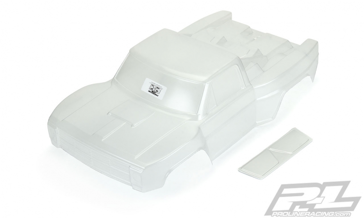 This is the 1967 Ford® F-100 Race Truck Clear Body for Short Course. Now you can convert your Short Course truck into a fully licensed 1967 Ford® F-100 Race Truck! This clear body is pre-cut for easy installation and can be fully customized with whatever paint job you desire. The 1967 Ford® body features the iconic flat front F-100 grill and wide fender flares to represent the aggressive fiberglass bulges found on full-size race trucks. Transform the look of your Short Course Truck and add even more scale realism with the fully licensed 1967 Ford® F-100 Clear Body from Pro-Line!Features: