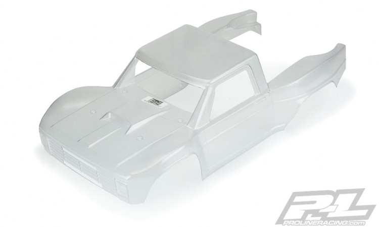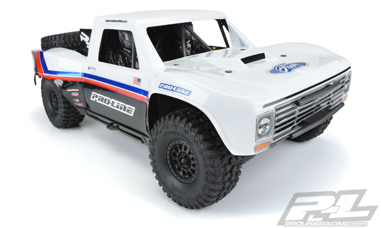 This is the 1967 Ford® F-100 Race Truck Clear Body for the Unlimited Desert Racer®. The 1967 Ford® F-100 is a classic vintage truck that has recently become a popular platform for building full-size pre-runners. Pro-Line is proud to bring the nostalgic and majestic body lines of the 1967 Ford® F-100 to your Traxxas® UDR® for the ultimate in scale realism! This body features the iconic flat front grill and wide fender flares to represent the aggressive fiberglass bulges found on custom race trucks. The F-100 body comes clear so you can custom paint your truck to match anything your heart desires and is made from high quality, crystal clear polycarbonate material. Pro-Line's 1967 F-100 body mounts directly to the cage on the UDR® in the same locations as the stock body and is fully pre-cut for an easy direct fit. Transform the look of your Unlimited Desert Racer® and even more scale realism with the fully licensed 1967 Ford® F-100 Race Truck Body from Pro-Line!Features: