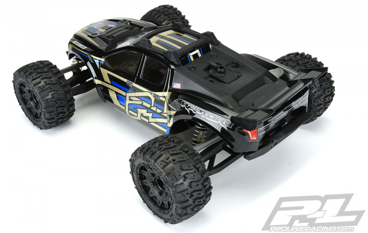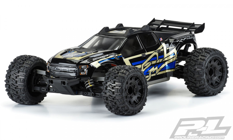 This is a Pro-Line 2017 Raptor Clear Body for Rustler® 4x4. Introducing one of the most anticipated Truck bodies: the new 2017 Ford® F-150 Raptor truck body for the Rustler® 4x4! Pro-Line's detailed and functional replica includes all the rugged Raptor style and attitude that you want and expect while being a direct fit onto the stock cage and body mounting system. This body completely transforms your Rustler® 4x4 and allows you to add a custom paint job to your truck! The body comes pre-cut from the Pro-Line factory, so you just need to add paint along with the stock internal cage/body mounting system and you will be back up and running with your friends. If you are a Raptor fan, then this is the body for you!Features: