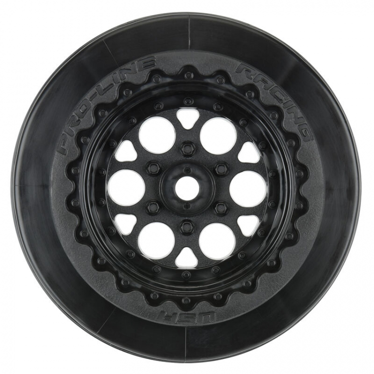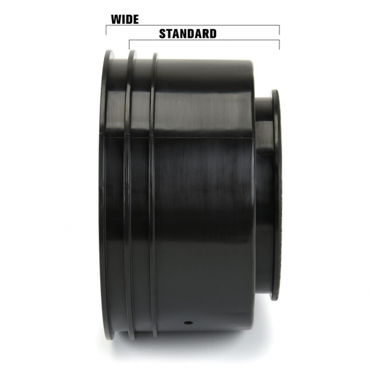 It's Showtime! Pro-Line has an all-new Wide SC format Black Drag wheel featuring a scale spoke pattern that mimics full-size drag wheels. The Showtime+ Wide SC wheel is a perfect fit for Pro-Line's new Reaction+ HP Wide SC tires (PL10188-203), but this wheel is also designed to fit standard width 2.2"/3.0" SC tires using the extra inner bead channel. The Showtime+ wheels are strong and lightweight 12mm hex wheels making them the ideal choice for performance drag racing. The wheel offset is ideal for Losi® 22S™ No Prep Drag Car, 2wd Slash® trucks converted to no-prep Drag Racing cars and AE DR10. The Showtime+ Wide SC Drag wheel and every other wheel that Pro-Line makes is proudly Made in the USA. Launch your no-prep Dragster to the next level with the Pro-Line Showtime+ Wide SC Drag Wheels today!Features:
