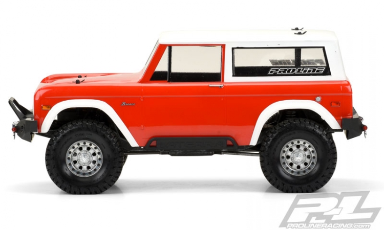 This is a 1973 Ford® Bronco Clear Body. Pro-Line is pleased to announce the release of the 1973 Ford® Bronco body for 1:10 Rock Crawlers. Pro-Line has captured the overall essence of the Bronco and have now made it available in 1:10 scale format for 12” wheelbase Rock Crawlers! Complete with detailed grill, headlights, body molding trim, and that original distinct Bronco look, classic truck scalers will not want to be left behind.When you're looking to travel back in time in automotive history and let your imagination take over, then check out Pro-Line's new 1973 Ford® Bronco body.