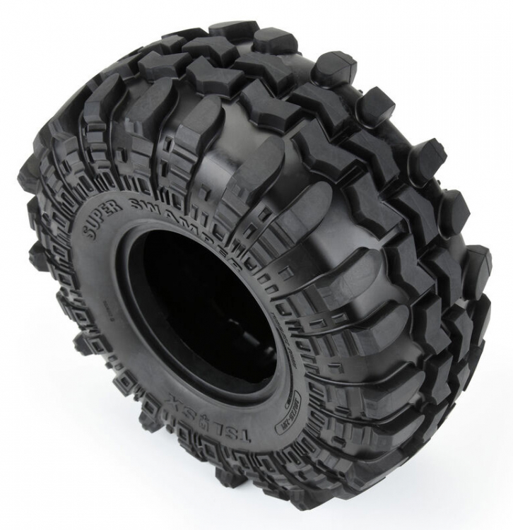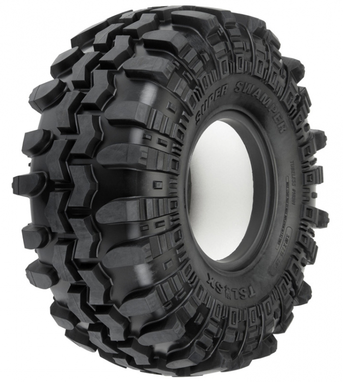 This is a pair of Interco® Super Swamper® TSL SX 2.9" Crawler Tires. Under official license from Interco® Tire Corporation, Pro-Line is proud to announce the gnarliest tire yet for the 1/6 SCX6™ rock crawler: the legendary Super Swamper® TSL SX! With "almost scale" not being acceptable and access to Interco's® design data, Pro-Line's engineering staff has reproduced the original Super Swamper® in a scale configuration matched by none. At a massive 7.15" tall by 3" wide, the Swamper® adds a whole new style to your rig, perfectly combining scale looks with the legendary G8 compound for unmatched rock crawling performance.The full-size Super Swamper® TSL SX features the ultimate tire tread design by pairing the distinctive chevron tread pattern with the famous, trademarked, and patented Interco® TSL (three-stage lug) tread design. TSL is a lug pattern with short, intermediate, and long lugs that are each uniquely arranged, proportioned, and spaced which allows them to bite quickly and self-clean rapidly. Each of these details has been faithfully recreated in 1/6 scale to fit the 2.9" SCX6™ wheel. For the ultimate upgrade, pair them with the Dual Stage Foams (PRO637600) Just like the full-size Interco® Super Swamper® TSL SX tires, Pro-Line tires are proudly Made in the USA!