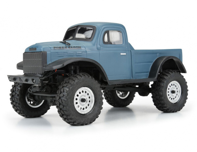 This is a 1946 Dodge Power Wagon Clear Body for SCX24™. Pro-Line is proud to introduce the 1946 Dodge Power Wagon body for the popular SCX24™ platform! This First Gen Power Wagon body style is made in 1/24 size that stays true to the original military-inspired 4x4 truck that civilians could buy. The 1946 Power Wagon features a menacing flat front grill with large flat panel style fender flares just like the real truck. The body includes all the details built into the body to complete the look of this iconic truck in a super miniature scale! The Power Wagon is a direct fit onto the Jeep® Wrangler JLU version of the SCX24™, while the other SCX24™ versions will require additional body mount parts for a proper fit (See Fits Tab for Details). Order your new Power Wagon body today!Features: