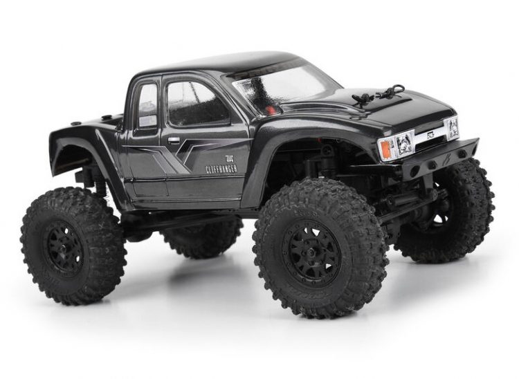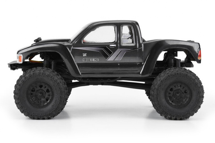 Introducing Pro-Line's Cliffhanger body for the SCX24™! Just like the larger Cliffhanger for 12.3" Crawlers, this mini-Cliffhanger features a pinched front end and a dove-tailed rear end for maximum tire clearance while still maintaining a true-to-scale appearance. The Cliffhanger is made from a single piece of crystal-clear polycarbonate to save on weight and has a molded-in drop-down bed to make room for you to add your favorite tiny scale accessories. Everything on the Cliffhanger body has been optimized for maximum crawling performance for your SCX24™. This body also includes optional headlight buckets for added scale appearance. Don't get stuck on the rocks, get your very own Cliffhanger body today!Features: