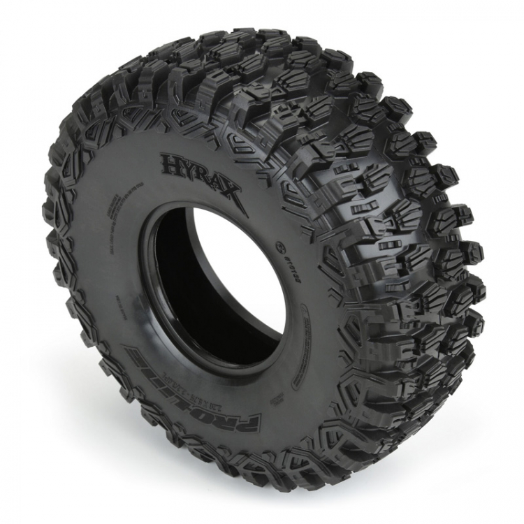 The future of U4 Rock Racing Tire Performance has arrived with Pro-Line's all-new Hyrax Tire! Designed from the ground up for maximum grip on the toughest terrain, the Hyrax tire is ready for anything the Race might throw at you. The Hyrax U4 features an aggressive and open tread pattern with each tread block containing multiple Sipes for incredible tread flex. The highly detailed connected tread on the sidewall of the Hyrax extends out for unmatched side-hilling performance. The Hyrax also features futuristic stepped tread blocks that create even more forward gripping edges that dig into slick rock like no other scale tire Pro-Line has produced to date! The Hyrax is made from Pro-Line's Legendary G8 material (PL10195-14) and Predator (Super Soft) (PL10195-03), so you know it provides the performance you can depend on. The Hyrax U4 features a Short Course style 2.2"/3.0" mounting bead making it perfect for the new crop of U4 racers like the Losi® Lasernut™.Features: