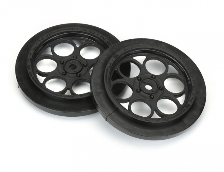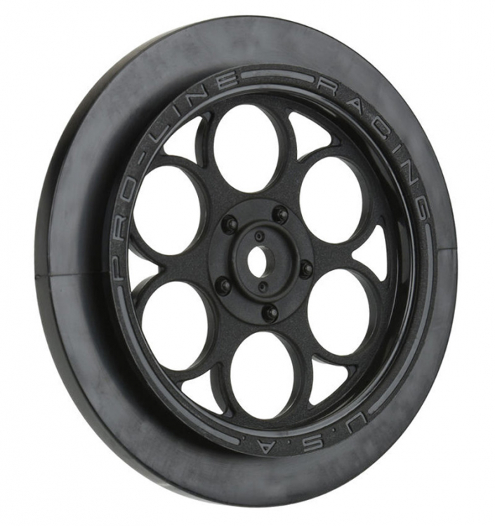 It's Showtime! Pro-Line has an all-new 2.2"/2.7" Black Drag Front Wheel featuring a scale spoke pattern that mimics full-size drag wheels. The Showtime Front Runner 2.2"/2.7" wheel is a perfect fit for Pro-Line's new Front Runner 2.2"/2.7" Tires (PL10197-203) and is designed to be super lightweight and narrow for maximum performance. The Showtime Front Runner Wheels are a strong and lightweight 12mm hex wheel making them the ideal choice for performance drag racing. The wheel offset is ideal for Losi® 22S™ No Prep Drag Car, 2wd Slash® trucks converted to no-prep Drag Racing cars, and AE DR10. This wheel is designed to eliminate the need for foam insert completely for the ultimate in lightweight performance. The Showtime Front Runner Wheel is proudly made by Pro-Line and Made in the USA. Launch your no-prep Dragster to the next level with the Pro-Line Showtime Front Runner Drag Wheels today!Features:
