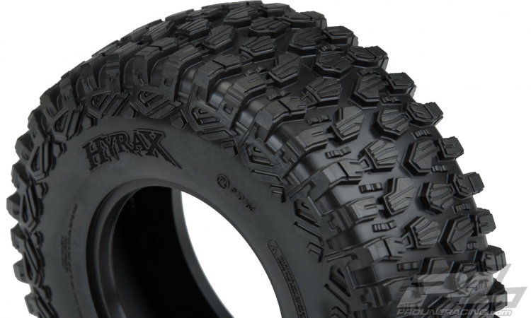 This is a pair of Hyrax SCXL All Terrain Tires. The future of Desert Truck and oversized SC Tire Performance has arrived with Pro-Line's all-new Hyrax SCXL Tire! Designed from the ground up for incredible grip and stability on the toughest terrain, the Hyrax tire is ready to tackle anything your Desert Truck or modified Short Course Truck can dish out. The Hyrax features an aggressive open tread pattern with each tread block containing multiple sipes for improved forward grip. The highly detailed connected tread on the sidewall of the Hyrax extends out for added scale realism and sidewall rigidity to prevent traction rolls. The SCXL is over ¼" taller than a standard Short Course tire for increased ground clearance and improved handling on rough terrain and is the perfect size for many solid-axle Desert Trucks. The Hyrax is made from Pro-Line's legendary M2 compound, so you know it provides the performance and durability that you can depend on. Don't get left behind, take your adventure to the next level with Pro-Line's new Hyrax SCXL tires!Features: