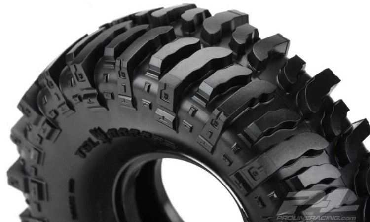 These massive 5.4" tall x 1.91" wide tires are perfect for guys looking to do some Mud Bogging with their rigs or for recreating a beloved full size truck in perfect scale detail. Pro-Line's officially licensed Interco® Bogger® tires feature a directional tread pattern with the patented Interco TSL (three-stage lug) design just like the full-size tires. The new Bogger® tires are aggressive in stock form and are also extremely versatile and easily modified for even more mud flinging performance. They come in Pro-Line's legendary G8 compound, so you know they will perform beyond expectations right out of the package.Features: