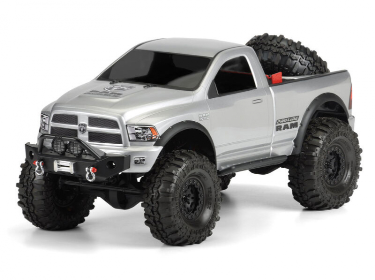 This is a RAM 1500 clear body for 1/10 Scale Crawlers. Pro-Line has something new for all of the scale rock crawling fans: a RAM 1500 body! This customized RAM body is perfect for giving your rock crawler a unique look amongst the crowd of Jeeps and Fords. The RAM 1500 body has an area in the bed made specifically for a spare tire and also features customized fender flares similar to ones found on full scale trucks. This licensed body has bold RAM 1500 styling that is a must have for your 1/10 rock crawler. Order your own and start customizing it today!Features: