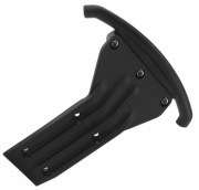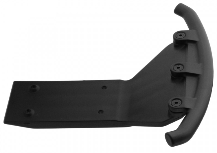 Our front bumper is a two-piece design, utilizing a skid plate and separate bumper that can be removed for racing. Each piece has specific design elements incorporated to dramatically improve the strength and durability of the HPI Baja 5B. The RPM skid plate is attached to the chassis with four 5mm screws, not two like the stock version, effectively cutting transferred impact energy in half, divided equally among those four screws. Our skid plate also has huge skid rails all along its lower section and is a major part of the impact-absorption system. It extends up, out and away from the chassis, creating a large curved section that acts as a buffer zone that rapidly dissipates impact energy by compressing during a hit, slowing and absorbing that energy without transferring it into the more fragile components of the vehicle. Once the impact force dissipates, the memory characteristics of our trademark blend of RPM nylons will return the bumper to its original position.