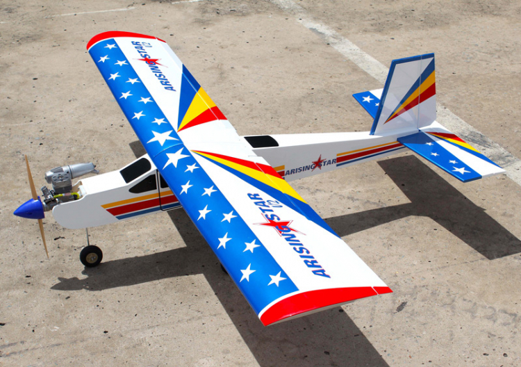The Arising Star was designed from the ground up with the beginner flyer in mind. It is a High-wing airplane which is easy to fly and quick to assemble. The airframe is conventionally built using balsa, plywood and veneer to make it stronger than the average ARTF, yet the design allows the airplane to be kept light. You will find that most of the work has been done for you already. The pushrods are pre-cut to the correct lengths, the motor mount has been fitted and the CA hinges are pre-installed.Features: