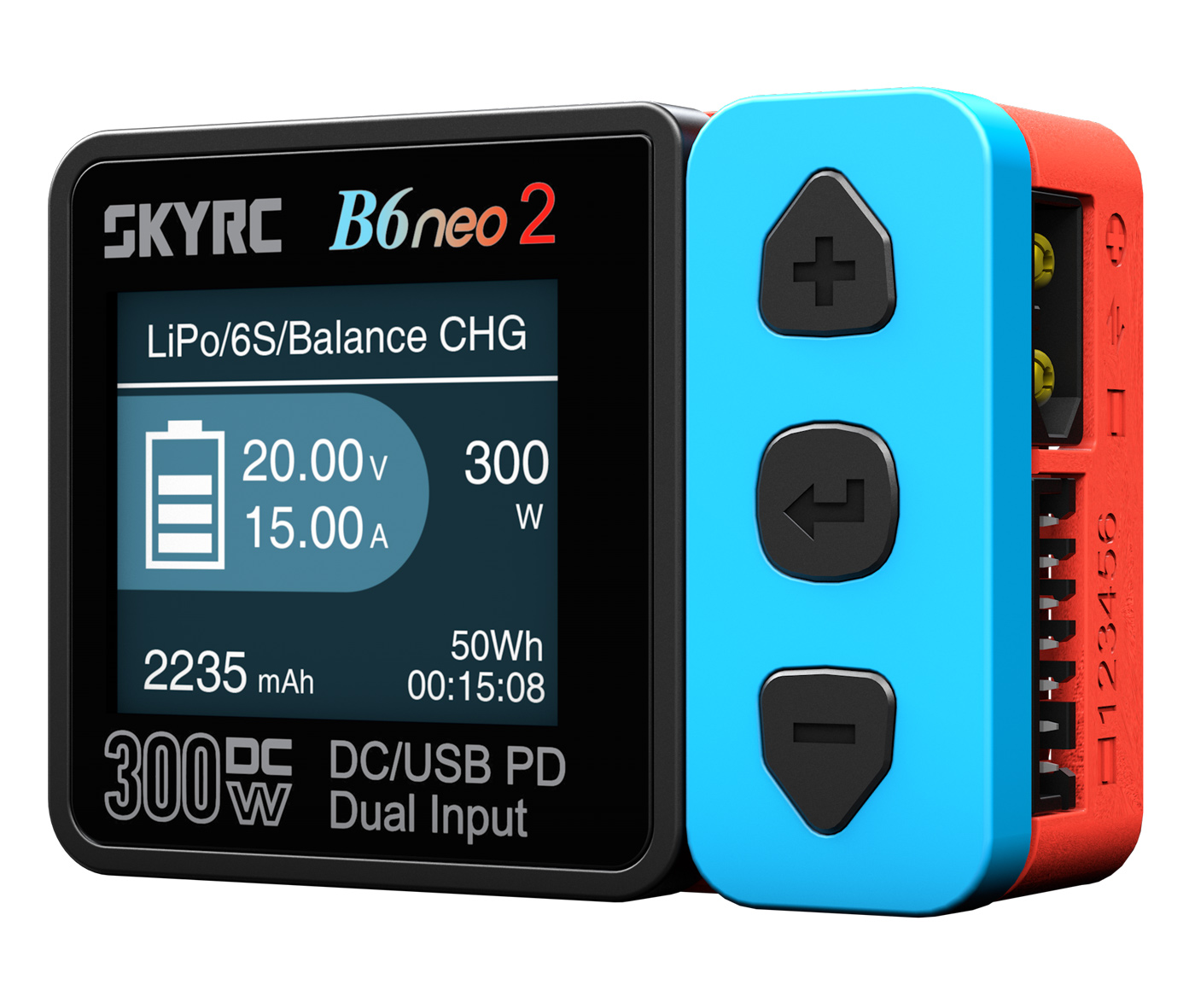 B6neo series reimagines the iconic iMax B6—now in a footprint smaller than a credit card. Nearly 1/4 the size of the original, B6neo, B6neo+, and B6neo 2 pack serious power into sleek, colorful plastic shells. While the classic B6 maxed out at 50W DC, the new B6neo series delivers up to 300W on DC and 80W via USB PD, bringing modern performance to your pit bench. With PD input now essential for everyday convenience, the B6neo series leads the way once again.