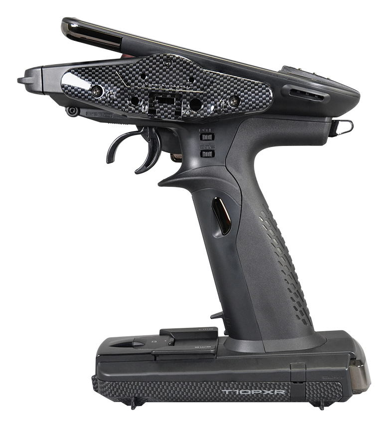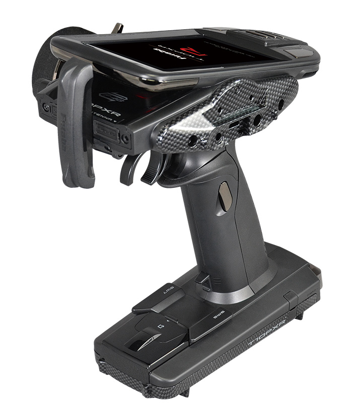 - Optimized Center of Gravity Balance. By revising the transmitter's internal structure, layout, and weight distribution, we've achieved a well-balanced grip feel and improved operability. In particular, the LCD mounting bracket has been changed to a glass fiber reinforced resin (GF) for reduced weight, optimal weight distribution, and increased rigidity.
