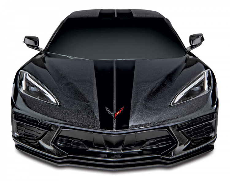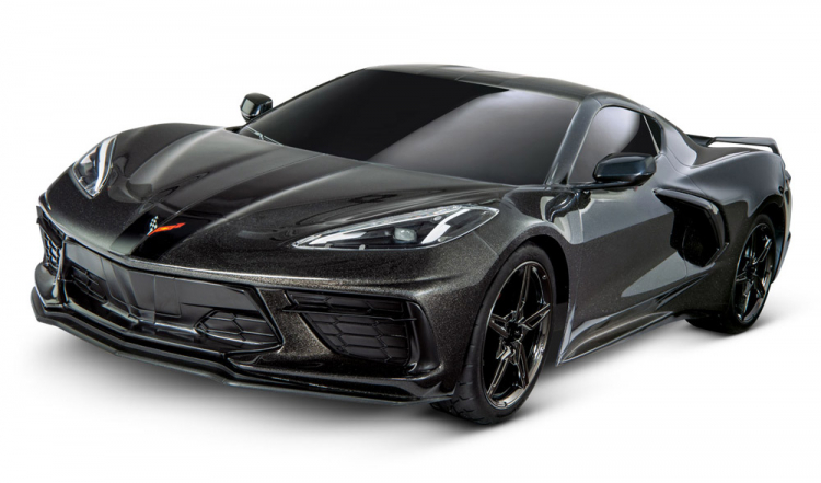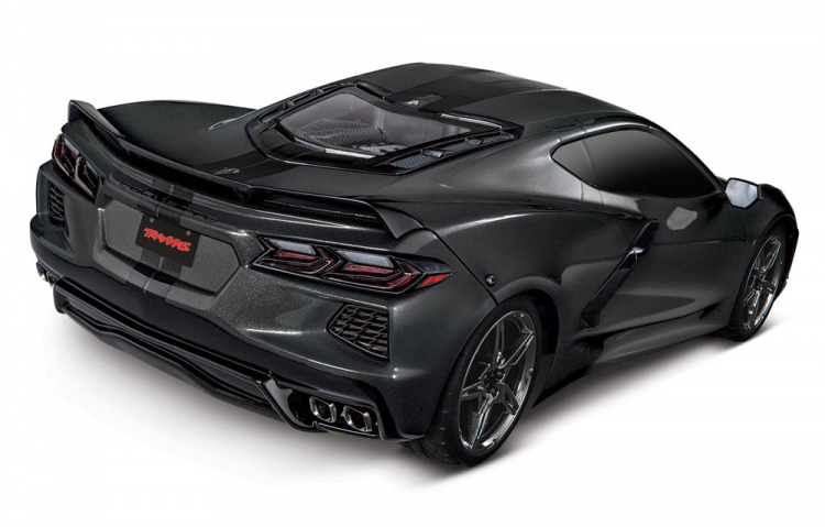 Traxxas delivers the spirit and excitement of the all-new mid-engine Corvette in exacting scale detail on the new, larger 4-Tec 3.0 chassis. The new Traxxas 4-Tec 3.0 puts supercar performance in your hands with a new long-wheelbase, wide-track design. The faceted, Corvette Stingray body and its massive side intakes are duplicated to the millimeter. The simulated LT2 V8 is visible beneath the rear hatch. Authentic black-chrome wheels fill the fenders. Beautiful to display—with Traxxas performance that demands you to drive.
