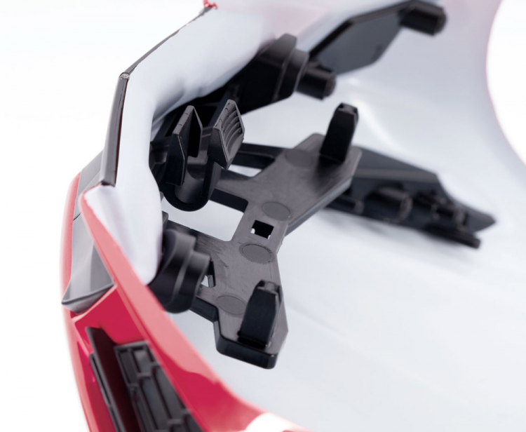 The Stingray’s meticulously detailed shape is unmarred by out-of-scale posts or clips. Instead, an integrated quick-release system secures the body invisibly. The hidden mechanism delivers a secure hold, and releases in seconds to provide chassis access.