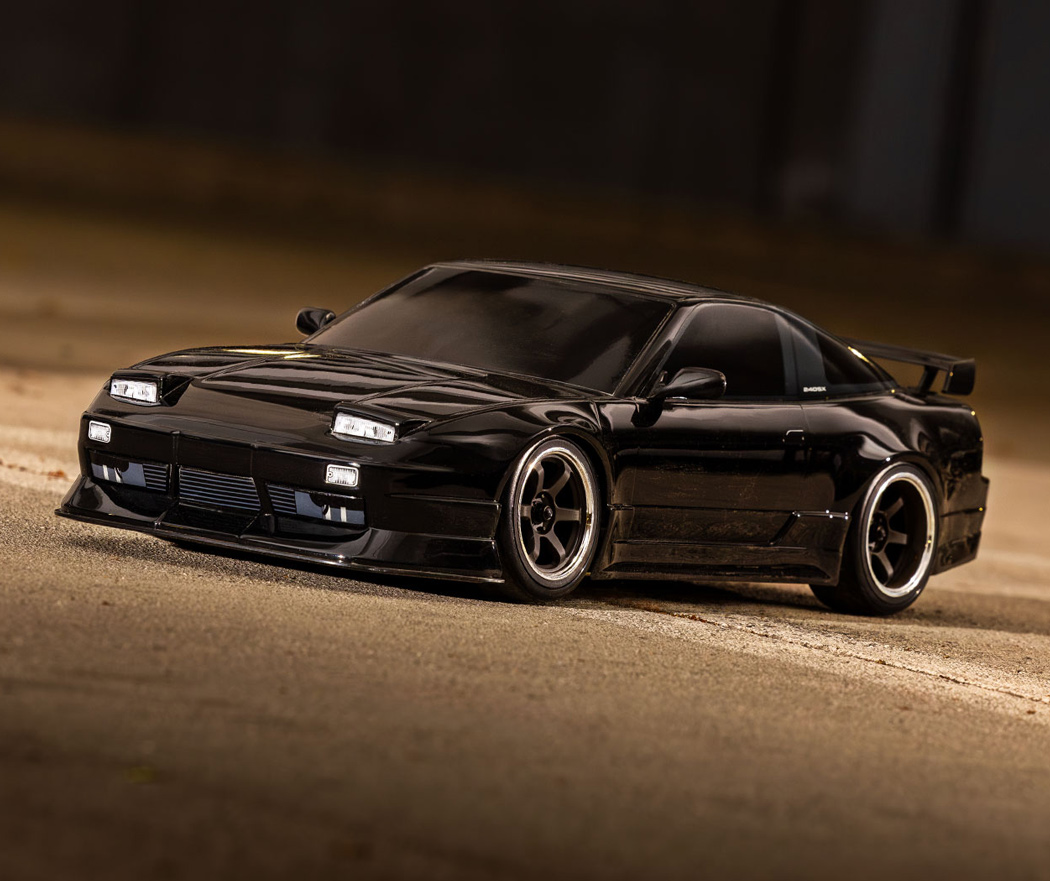 4-Tec Drift raises the bar for durability, ease of use, and scale detail with its clipless Nissan 240SX body. Beautiful high gloss paint contrasts the molded body details for show-stopping looks and classic 80’s Nissan styling. Hidden body mounts under the hood and rear spoiler preserve the 240SX’s sleek lines while holding the body tightly to the chassis.