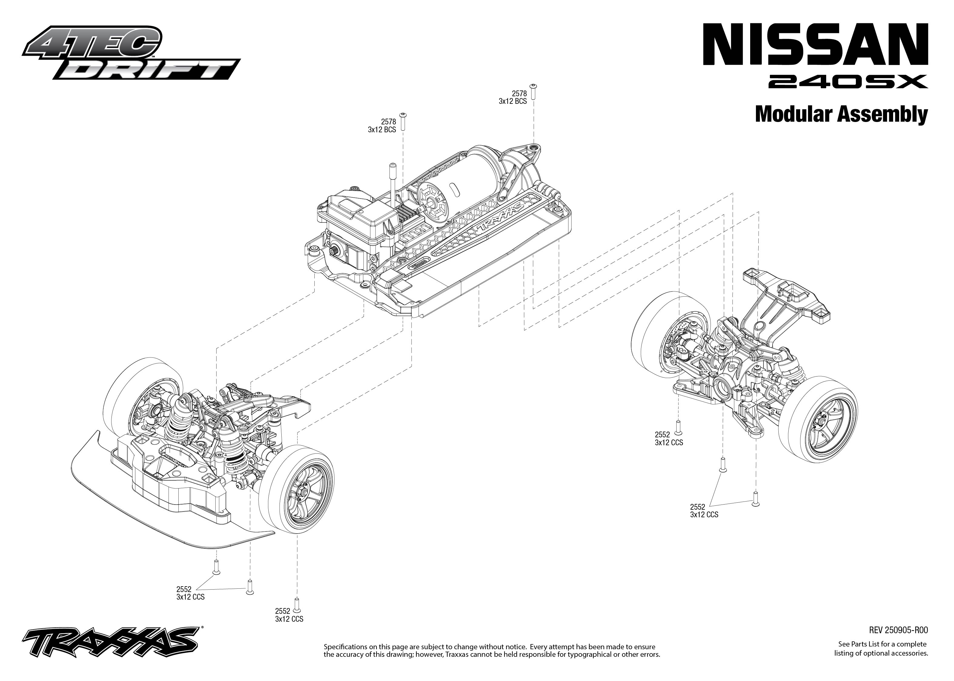 Precise Drifting - Classic Nissan StyleA favorite at drift competitions, the S13 Nissan® 240SX combines light weight, rear-wheel drive, and almost perfect 50/50 weight distribution. Traxxas creates the ultimate RC drift car by adding an incredible replica Nissan 240SX body to the proven 4-Tec® Drift chassis. Outfitted with advanced TSM® Drift technology, 4-Tec Drift is easy to master and endless fun to drive with its smooth, predictable slides and high-tech chassis. Take your drifting experience to the next level with the Traxxas 4-Tec Drift.