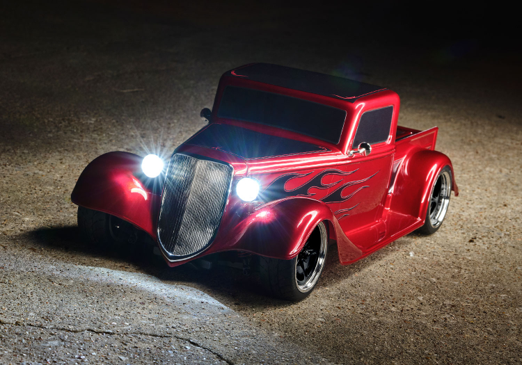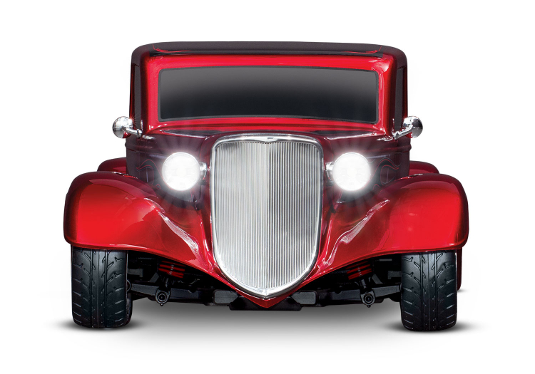 A steeply-raked chrome grille flows into the long narrow hood and aggressively chopped roof. Chrome headlights flank the sculpted fenders with full running boards. Deep, lustrous paint and wild graphics complete the package. The look is pure classic hot rod and Traxxas brings this timeless style to life in 1/10 scale.