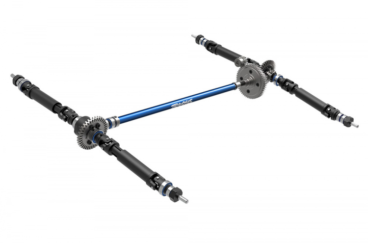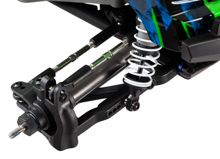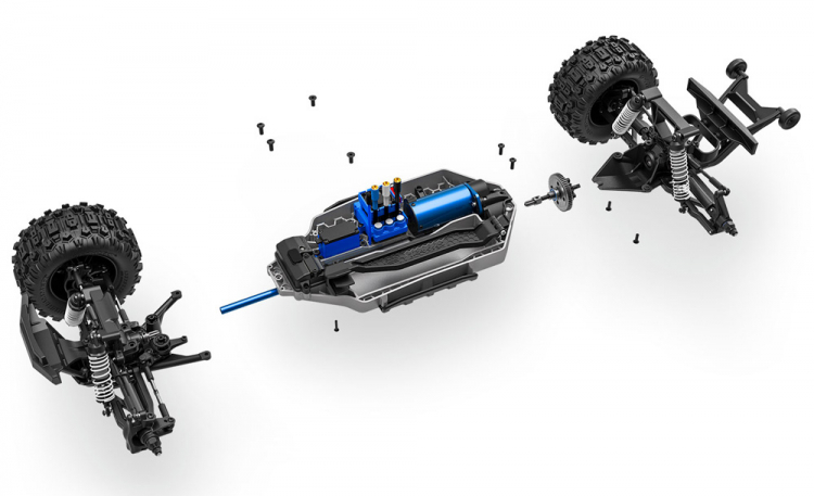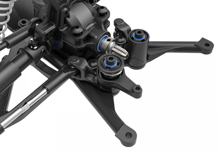 A conventional 4-wheel drive system may work for your average RC truck, but average isn’t in the Traxxas vocabulary. We pored over every inch of the Hoss’ drivetrain, strengthening critical areas to handle the 540XL’s immense power. A Torque-Biasing Center Drive outfitted with a steel spur gear replaces a traditional slipper clutch along with a tough aluminum center driveshaft and beefed-up extreme-duty axles. The resulting Hoss drivetrain is a model of both efficiency and brute strength.