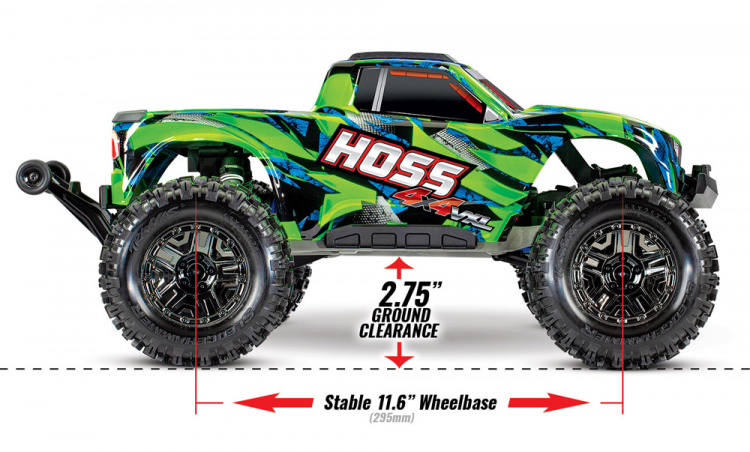 For those who believe “there’s no replacement for displacement,” Traxxas has built a monster truck for you. The new Hoss 4X4 VXL packs the same Velineon 540XL brushless motor found in the Maxx extreme monster truck. It’s the largest motor we’ve ever offered in a truck this size. The Velineon VXL-3s speed control rolls out the power smoothly utilizing large 6.5 mm connectors and an integrated cooling fan for fast, reliable fun.