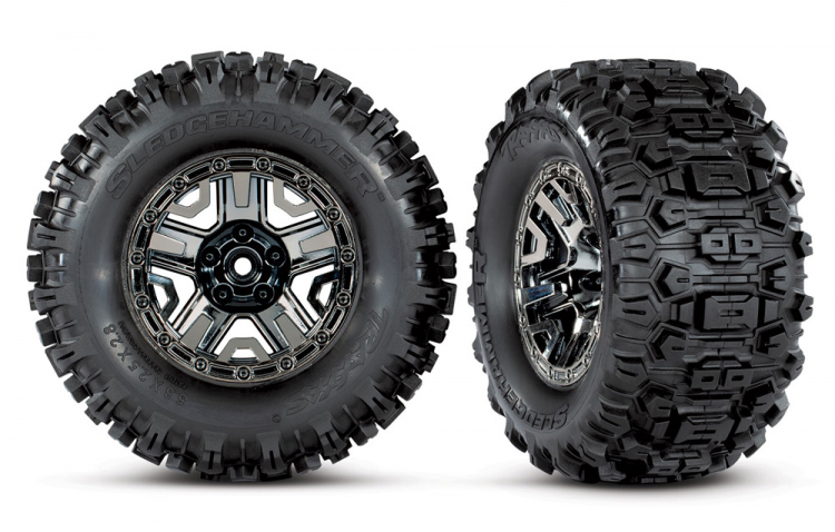 - Tires (pre-glued): 133mm Diameter Sledgehammer™