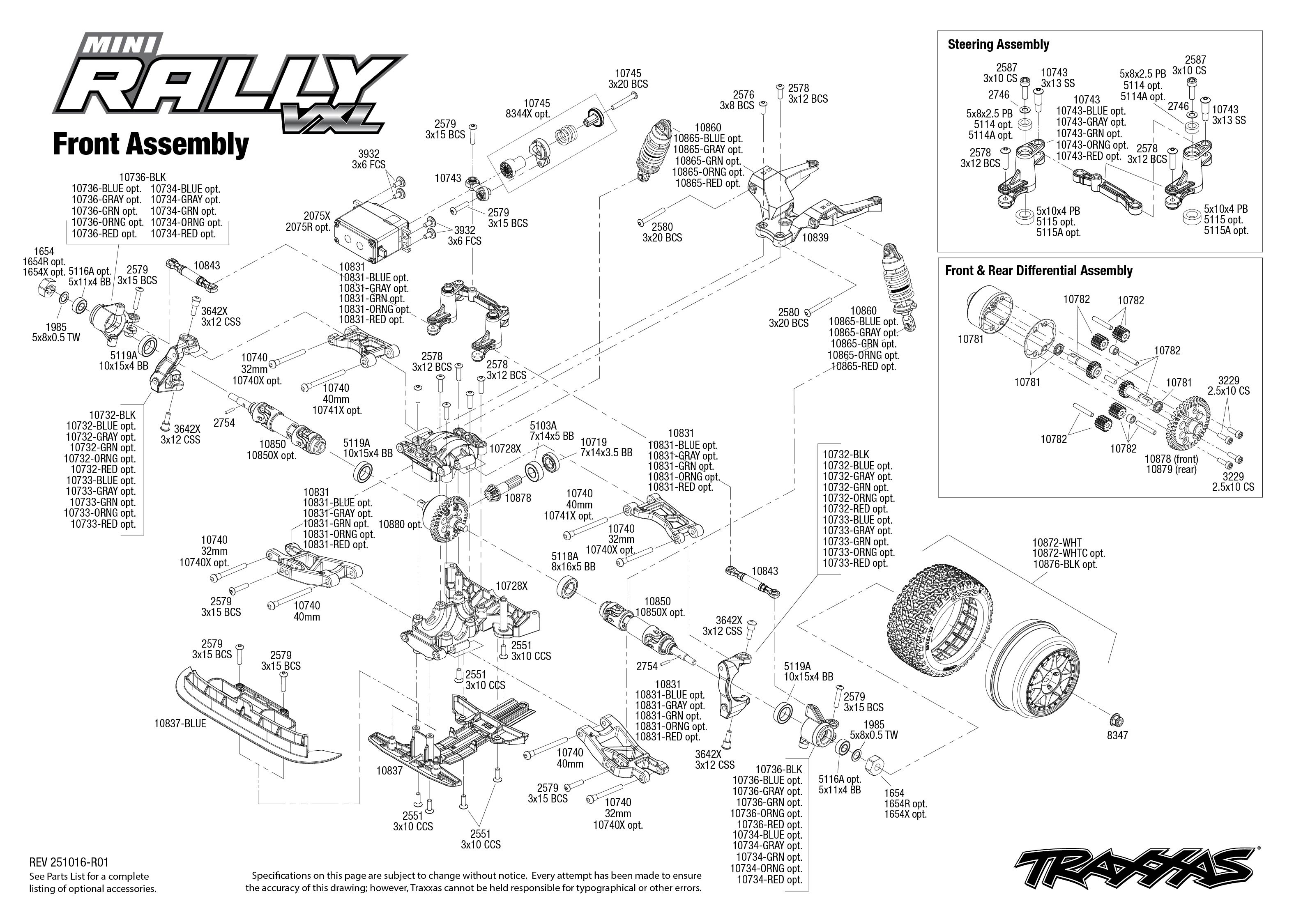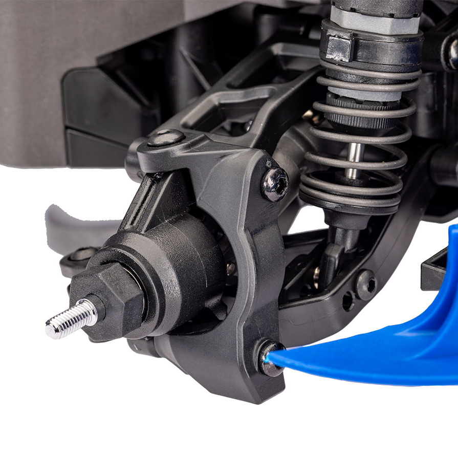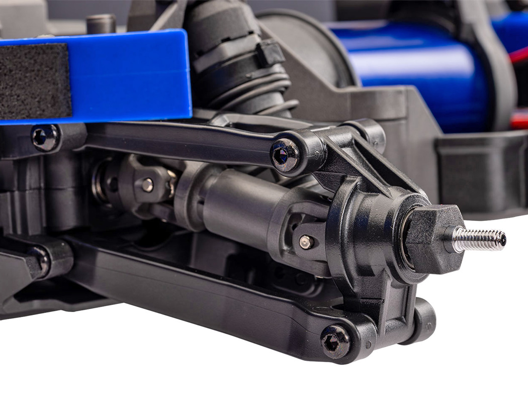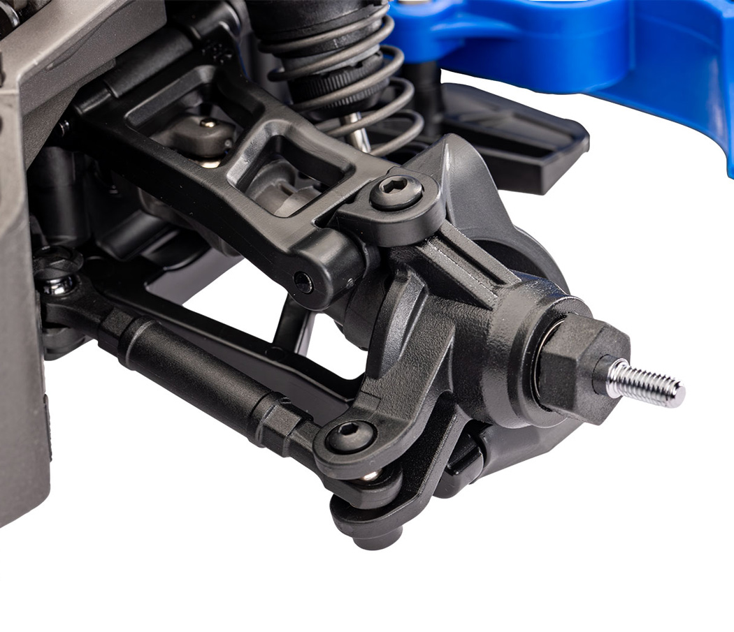 Dropping 1/10 scale Velineon power in a compact platform requires bold engineering. Mini Rally VXL comes outfitted with the proven driveline components of Traxxas’ toughest 1/10 scale 4X4 vehicles. Front, center, and rear steel-gear differentials, along with 32-pitch gearing and HD driveshafts, far exceed requirements for strength and long life.