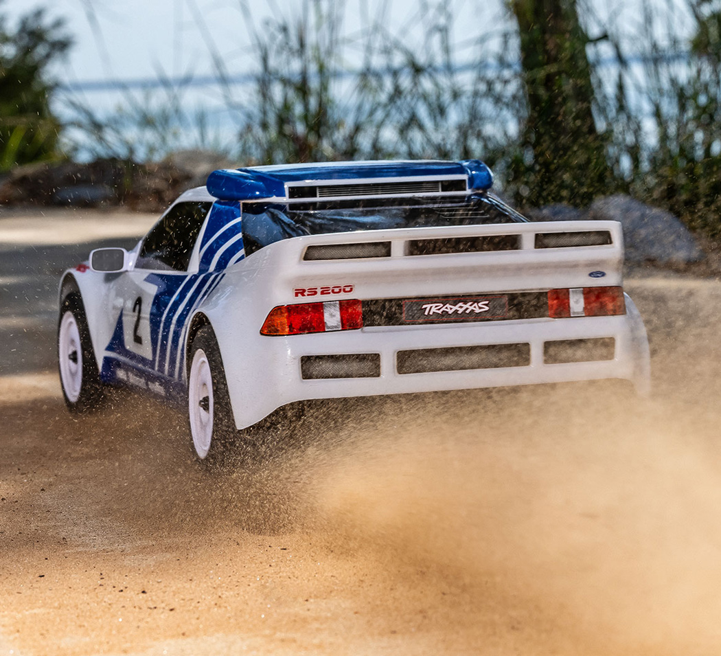 Like a full-size Group B rally car, the Traxxas Mini Rally VXL Ford RS200 rockets off the line with AWD traction and razor-sharp precision. Traxxas engineered Mini Rally VXL to make its outrageous power accessible to all drivers with superior handling and the reassurance of TSM®. Equally at home on dirt or pavement, Mini Rally VXL turns almost any surface into a rally stage.
