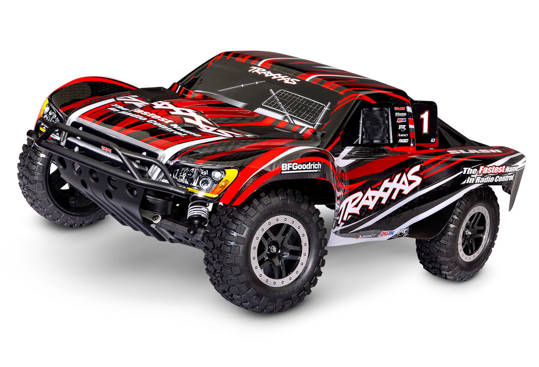 Traxxas Slash® puts you in the driver’s seat for intense fender-to-fender short course racing action at the track, or in your own backyard. The rear-wheel drive Slash is purpose built to fly over jumps and rip full-throttle through the turns. New Extreme Heavy Duty Upgrade parts allow Slash to take brutal punishment in stride. Slash's fully adjustable track-ready suspension delivers most authentic short course racing experience possible.