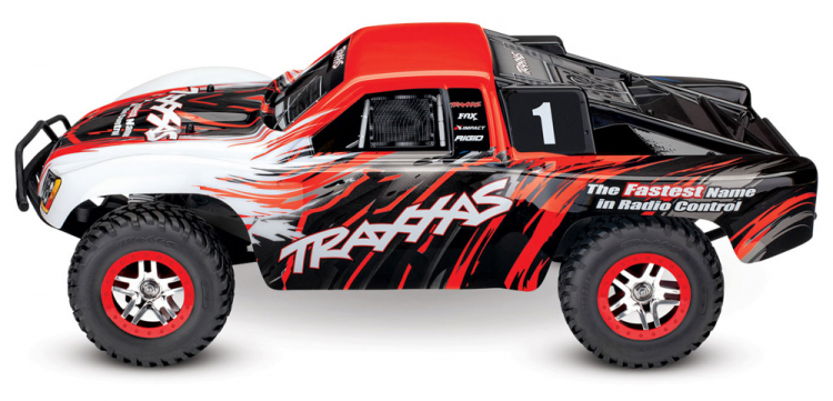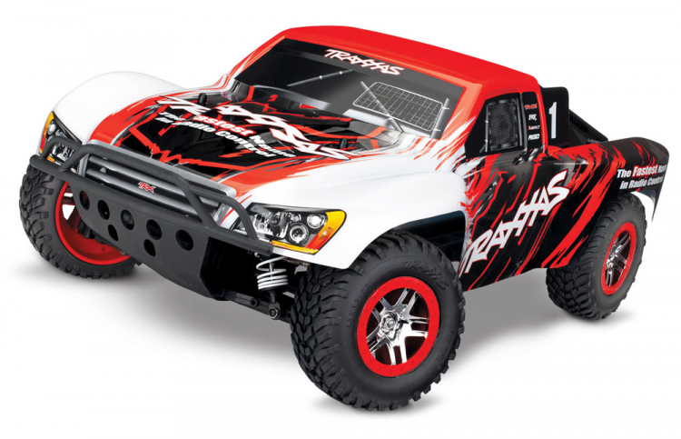 Traxxas Slash 4x4 är en snabb och potent fyrhjulsdriven radiostyrd short course truck i skala 1/10. Den definerar short course truck segmentet och sätter standarden för hållbarhet, prestanda och teknik. Innovativa egenskaper som Traxxas Stability Management® (TSM) och den Traxxas exklusiva Training Mode funktionen (sätter ned toppfarten till 50%) gör Slash 4x4 till en kontrollerbar och körglad 4WD truck som passar de flesta off-road fantaster.Slash 4x4 Egenskaper: