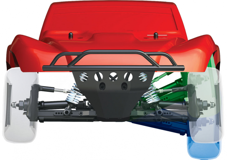 - Traxxas High-Current kontakter (patenterat) gör det möjligt för högkapacitets batteripaket att leverera maximalt med spänning och ström till det inkluderade Velineon Brushless Power Systemet