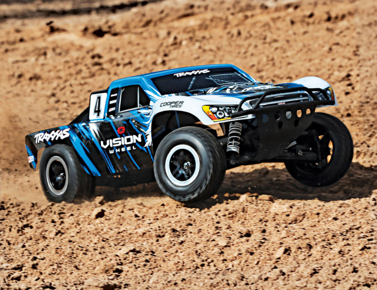 Traxxas Slash 4x4 är en snabb och potent fyrhjulsdriven radiostyrd short course truck i skala 1/10. Den definerar short course truck segmentet och sätter standarden för hållbarhet, prestanda och teknik. Innovativa egenskaper som Traxxas Stability Management® (TSM) och den Traxxas exklusiva Training Mode funktionen (sätter ned toppfarten till 50%) gör Slash 4x4 till en kontrollerbar och körglad 4WD truck som passar de flesta off-road fantaster.Slash 4x4 Egenskaper: