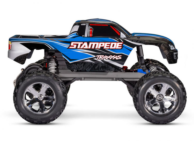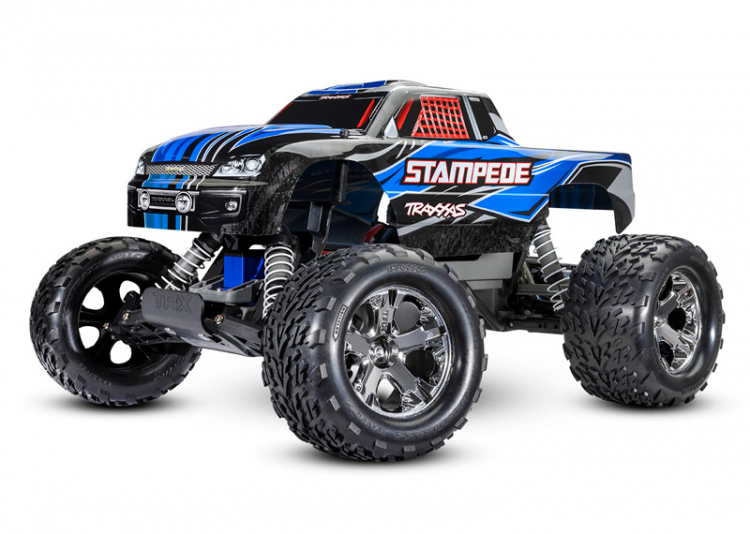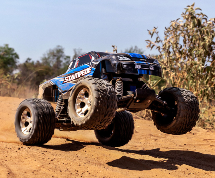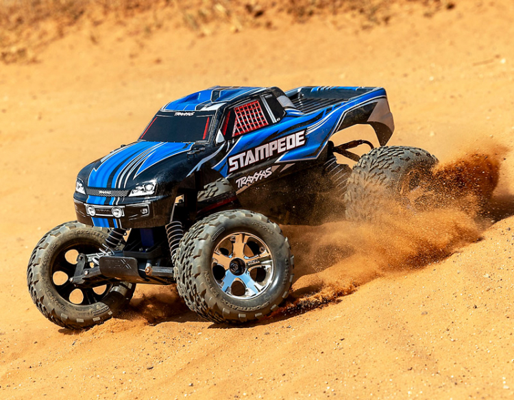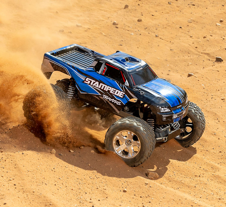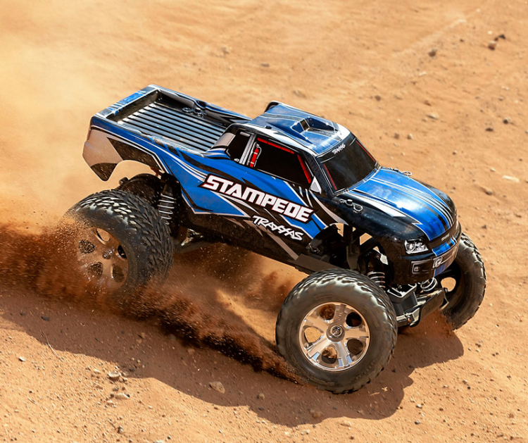 Traxxas Stampede® XL-5™ Rock-Crushing Torque—And Waterproof!Stampede’s legendary ruggedness has made its name synonymous with off-road fun. With a top speed of 30+ mph* and drive-over-anything ground clearance, Stampede rips through grass and powers over curbs. Pour on the throttle and the Titan® motor’s massive torque raises the front wheels skyward for dirt-roosting wheelies and high-power jumps. Mud, puddles, and snow don’t stand a chance against this high-octane monster truck thanks to Traxxas’ waterproof electronics. Add more excitement to your RC adventures with the quality and performance of the Traxxas Stampede.